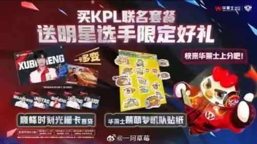 为了增强消费者参与感,华莱士为联名套餐加入了随机掉落的光栅卡盲袋。这些卡片包含明星选手动态形象以及梦叽贴纸等周边,很快成为玩家收藏的热门单品。不少用户为了集齐全套卡片反复下单购买套餐,并在社交平台分享自己的收藏成果。一位玩家在小红书留言:“拆盲袋的感觉就像开宝箱,每次都期待会不会出自己最爱的战队成员。”这种将餐饮消费行为转化为娱乐互动的设计,让华莱士的快餐体验变得更加有趣且富有仪式感。